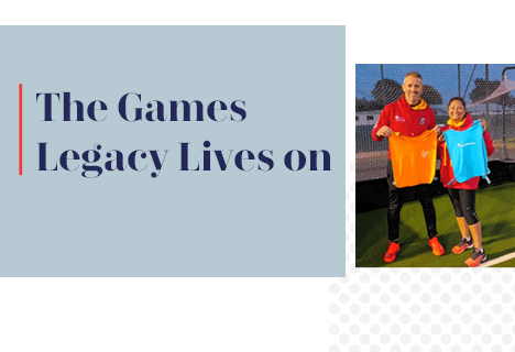 As part of our bid for the Birmingham 2022 Commonwealth Games, we committed to waste reduction. To this end, any fabric which was left over from the making of uniforms we made into sports bibs to be handed out to schools or sports clubs as a legacy to the Games. Here are two of those to receive theirs. Our Account manager, Angela Allen and Group head of IT, Lisa Johnston at New Hall Primary in Sutton Coldfield and Ed Grigg at Stratford Hockey Club.